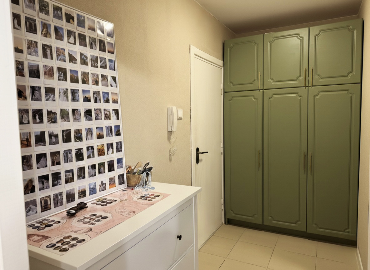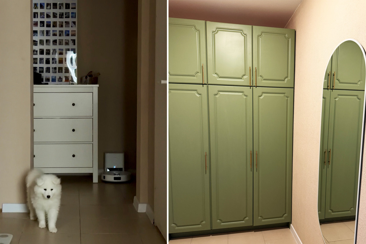 — Шкаф мы купили за 150 рублей. Увидели в нем потенциал, потому что первоначально он выглядел неплохо. Перекрасили, сделали новые ручки. Он идеально встал в нишу, что нас очень обрадовало.