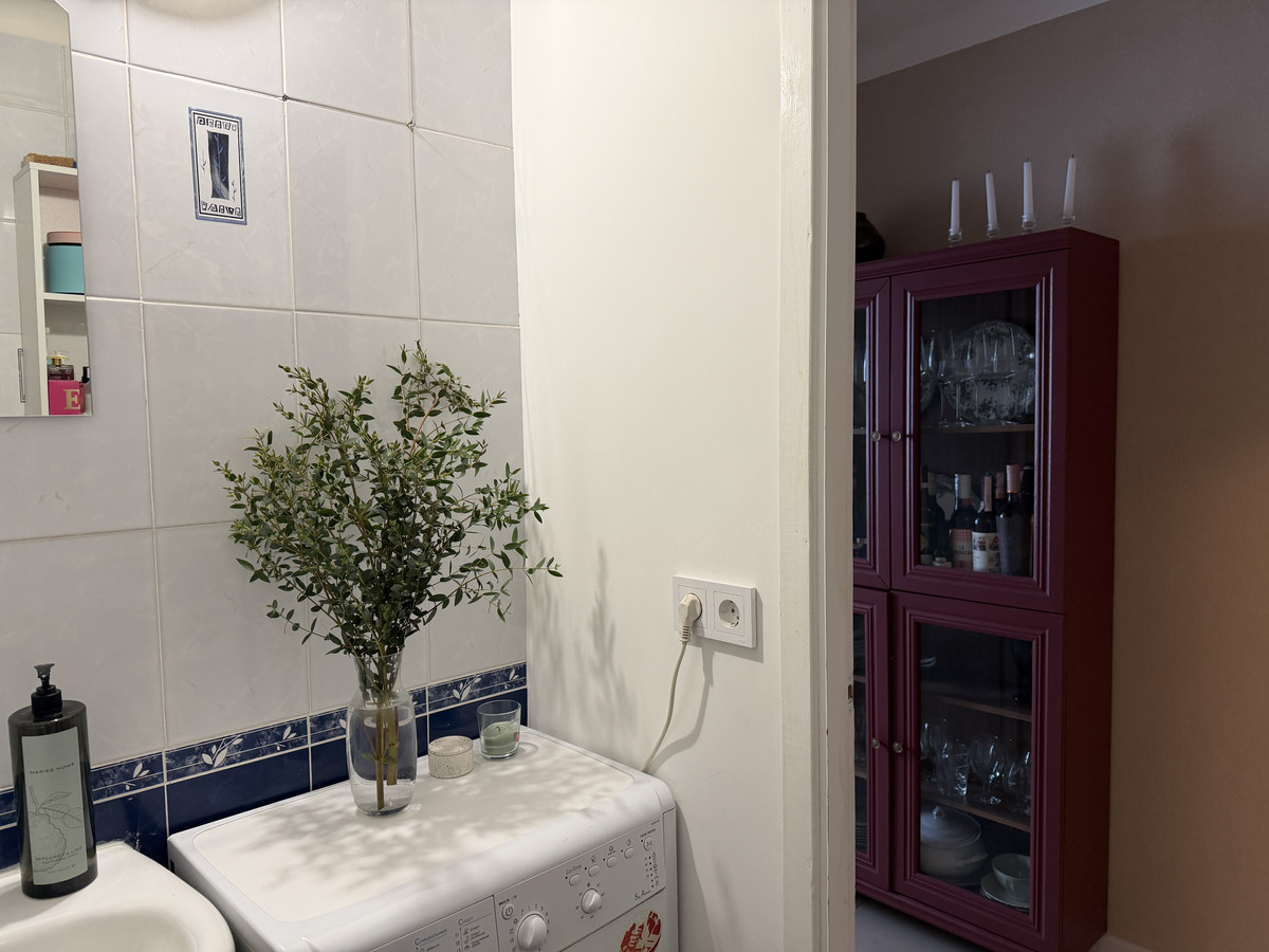 — Пришлось повозиться и с электрикой. Это была самая пыльная часть работ, потому что надо было делать штробы для электропроводки. В ванной комнате вообще не было розеток — а как сушить волосы или банально подключить стиралку? К слову, раньше она была подключена к розетке в коридоре, а провод тянулся через дверной проем. Также мы сделали дополнительные розетки в коридоре для роутера и пылесоса. Понятное дело, добавили их и на кухне.