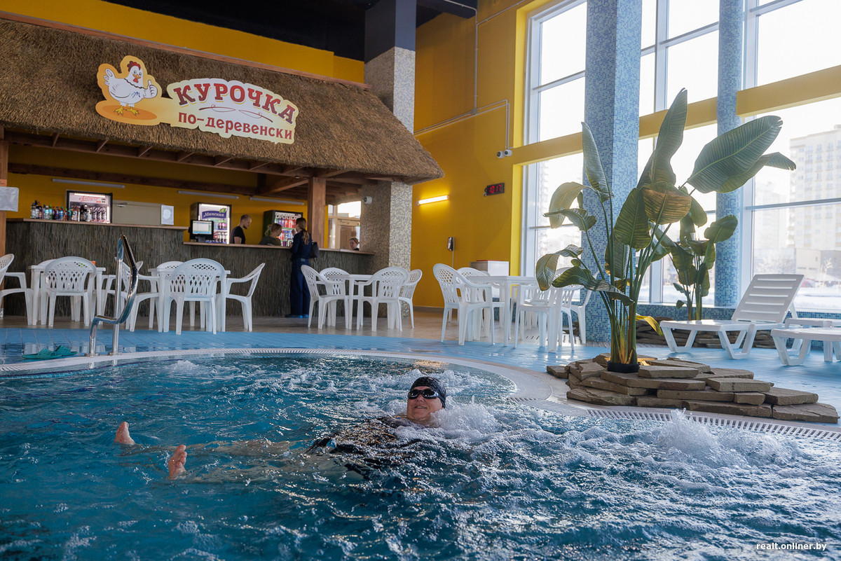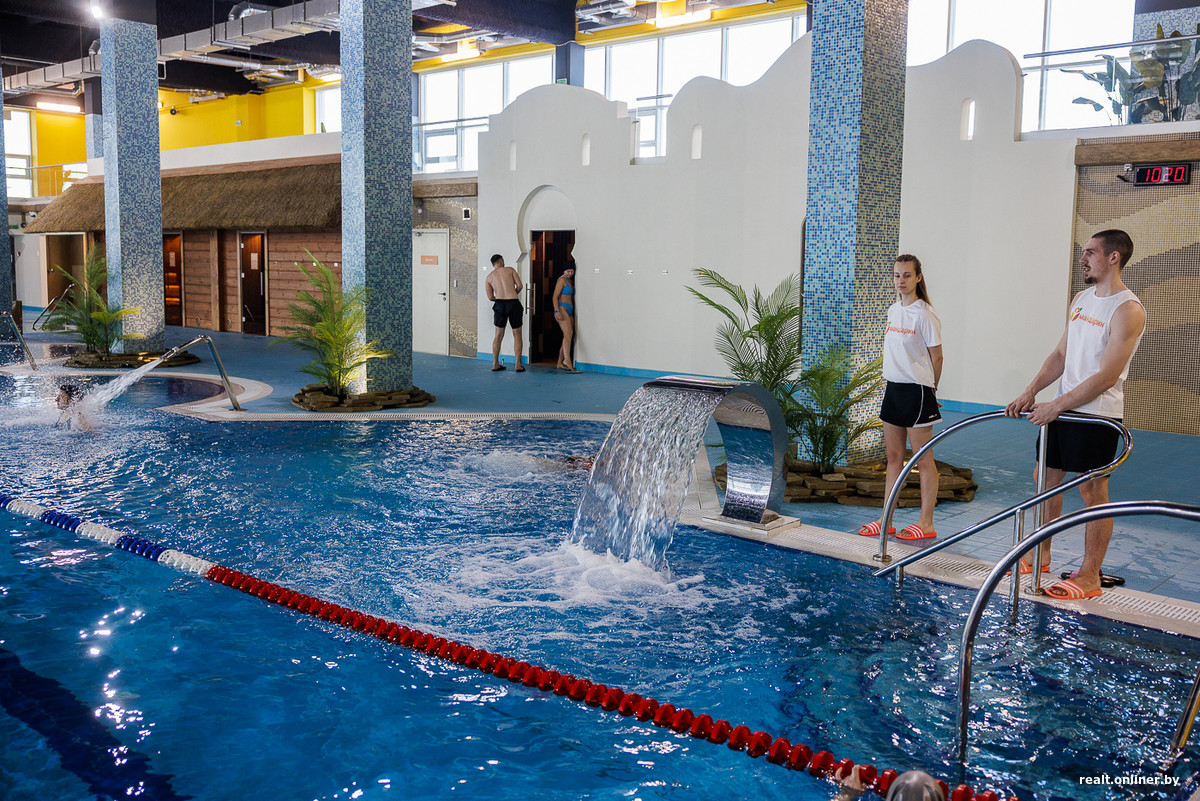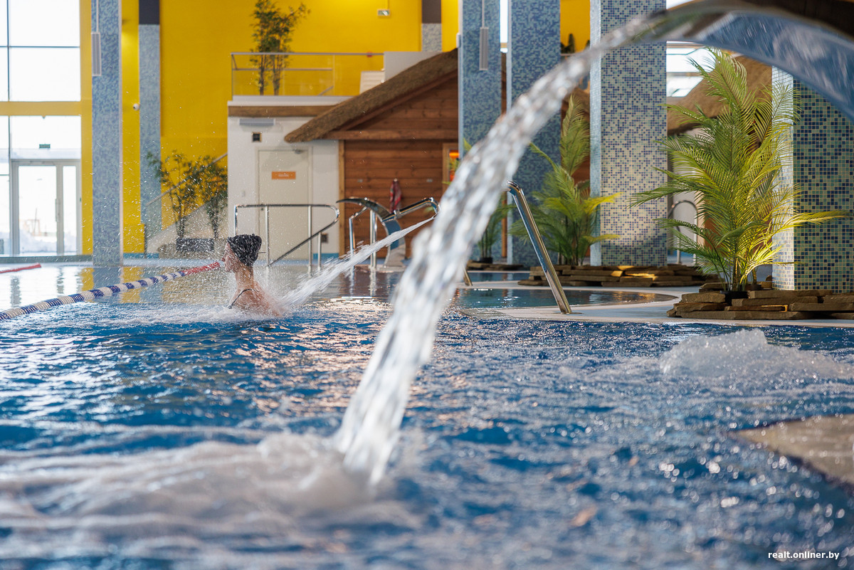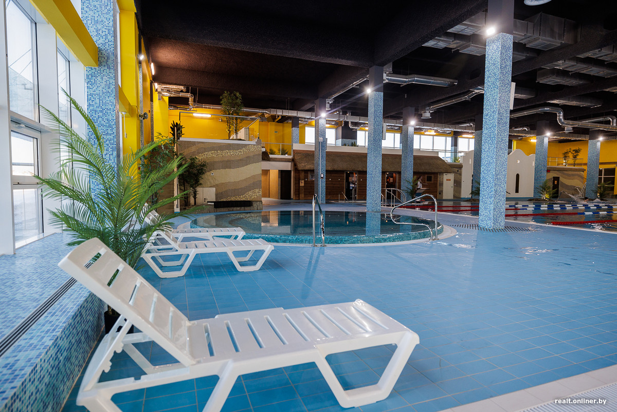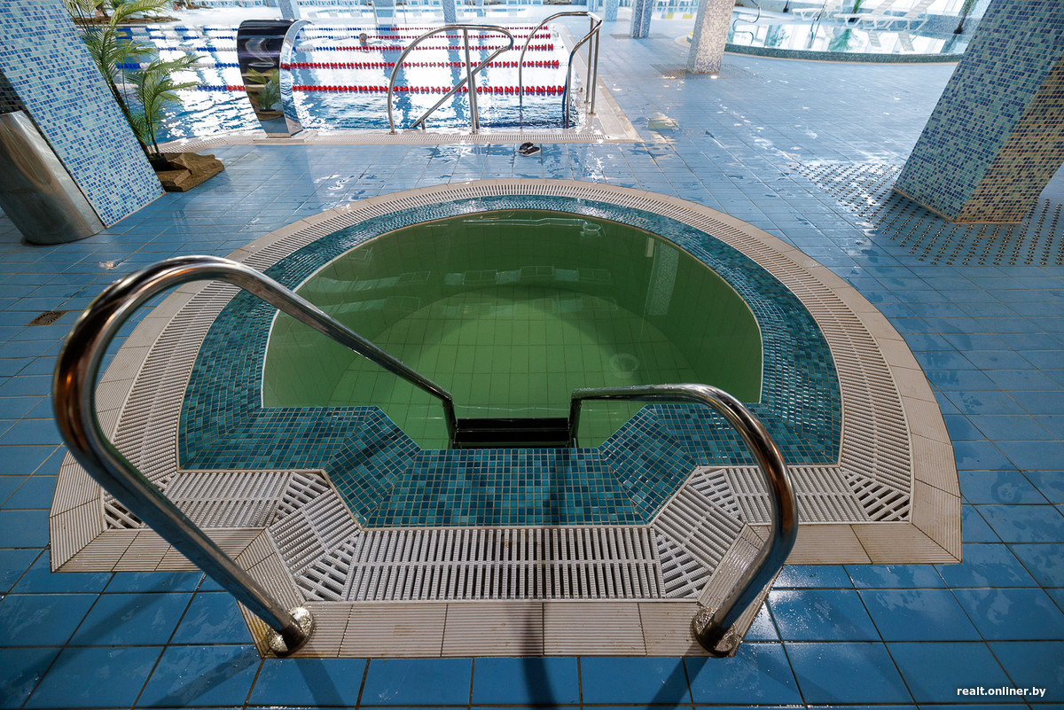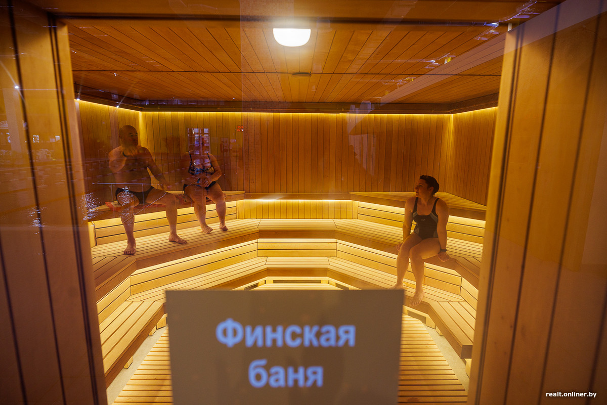 После плавания минчане могут отдохнуть в двух больших джакузи или отправиться в банную зону. Всего в комплексе пять бань: две русские, финская, хаммам и соляная. Хаммам заметно выделяется размерами — он рассчитан на большое количество гостей. Дополняет зону отдыха ледяная купель. Места для отдыха предусмотрены как на первом этаже, так и на втором.