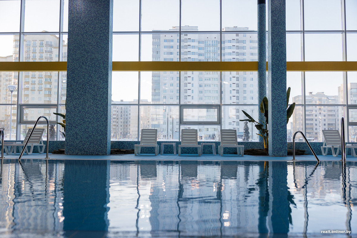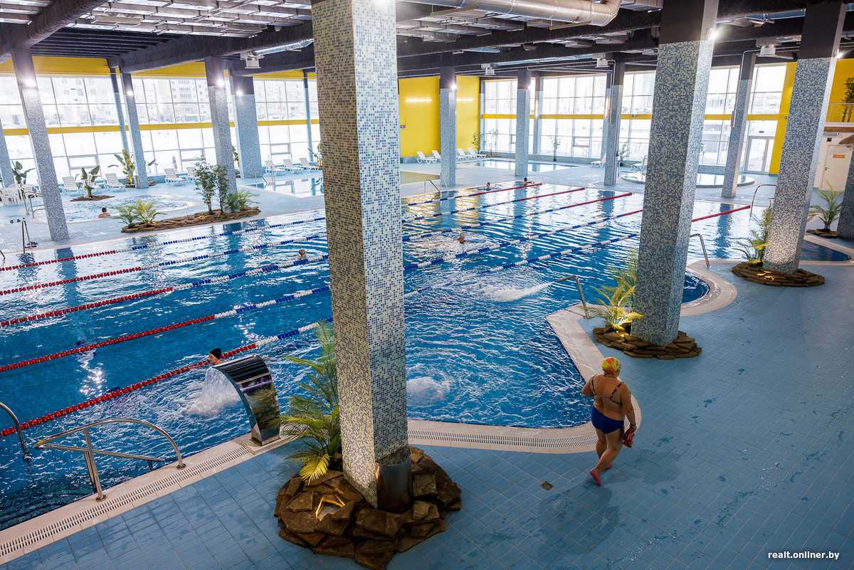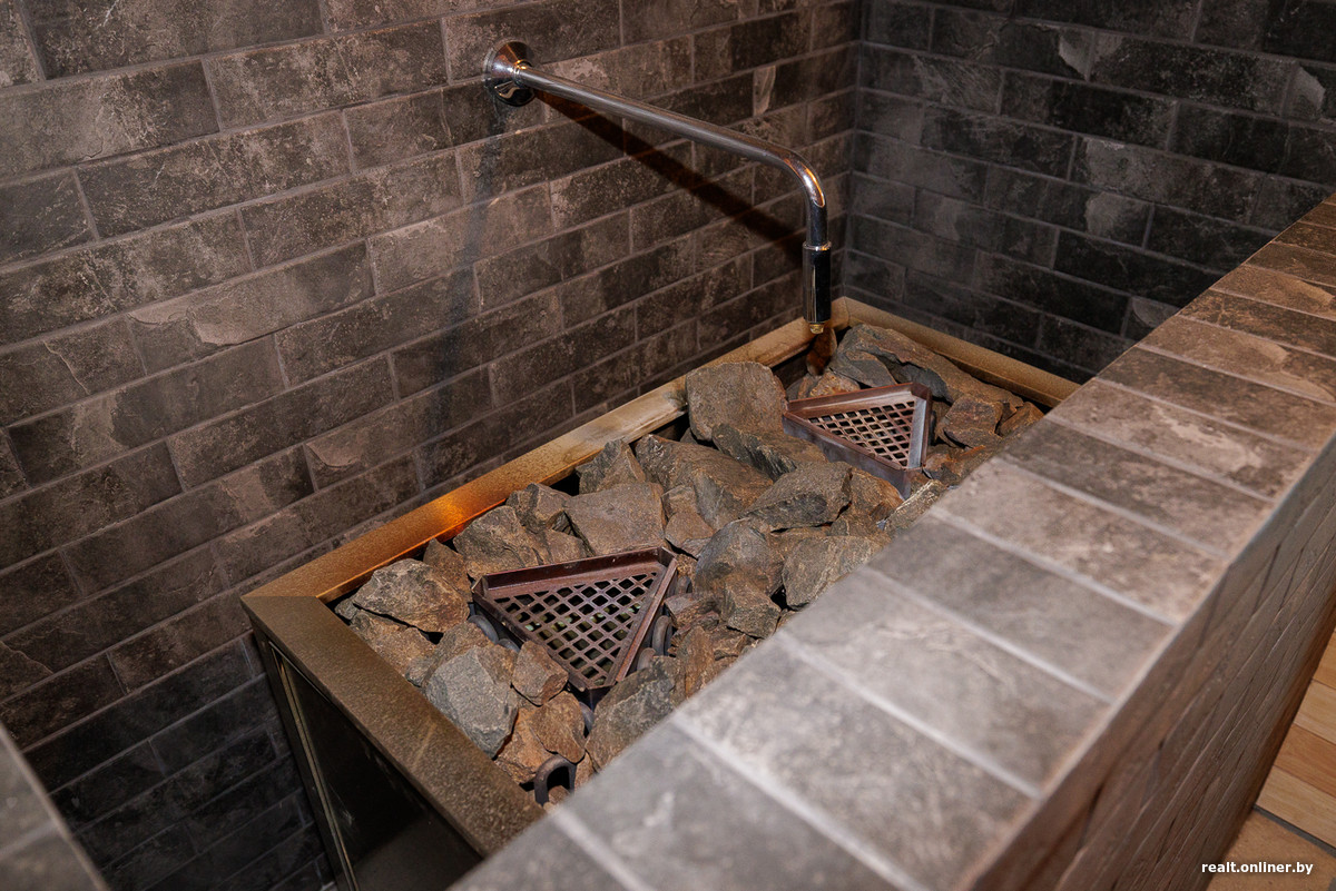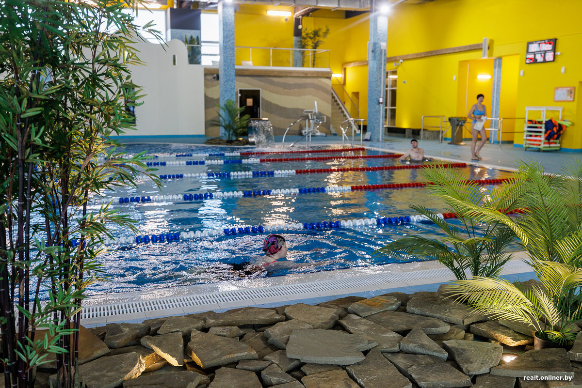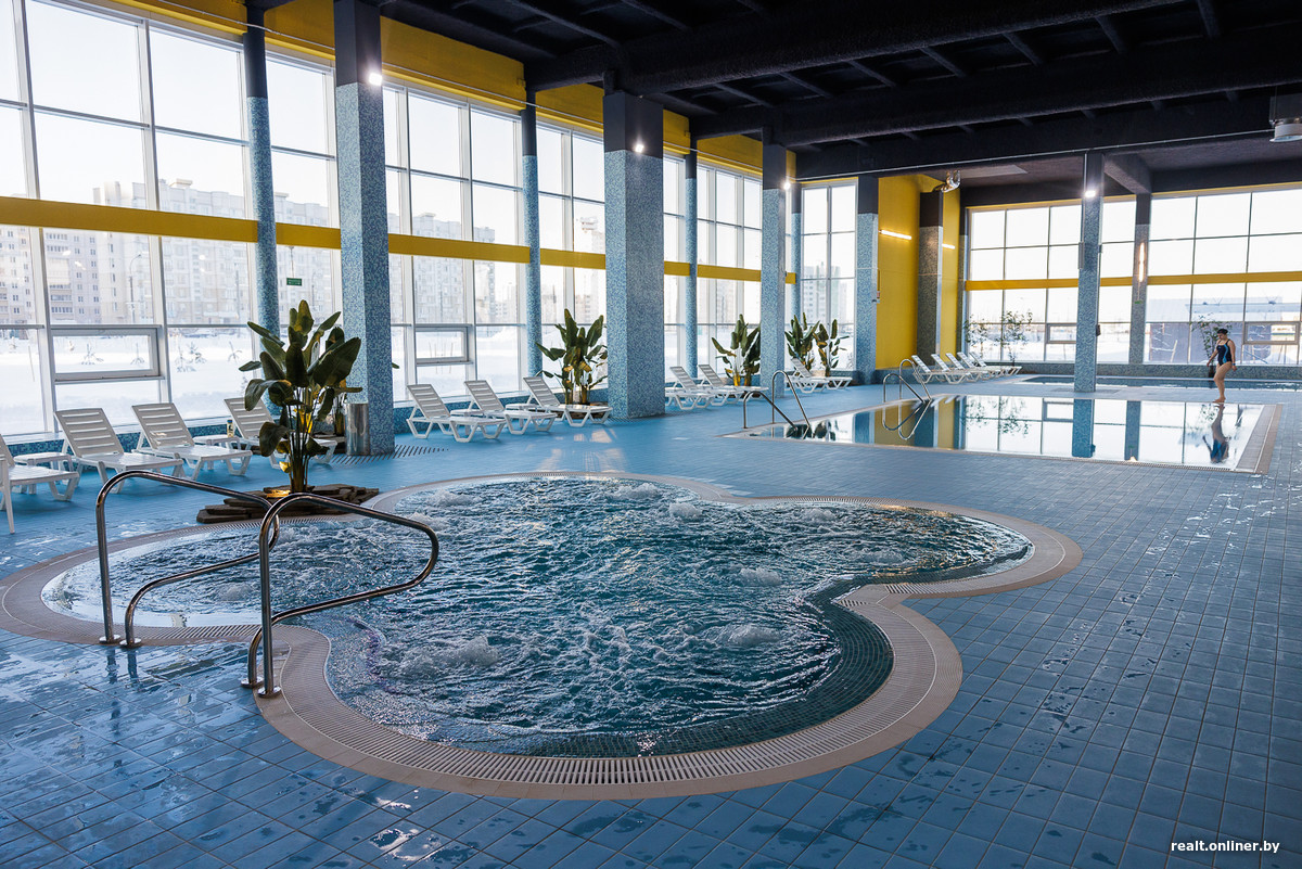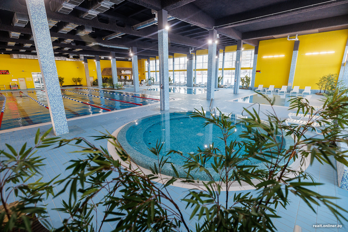После плавания минчане могут отдохнуть в двух больших джакузи или отправиться в банную зону. Всего в комплексе пять бань: две русские, финская, хаммам и соляная. Хаммам заметно выделяется размерами — он рассчитан на большое количество гостей. Дополняет зону отдыха ледяная купель. Места для отдыха предусмотрены как на первом этаже, так и на втором.