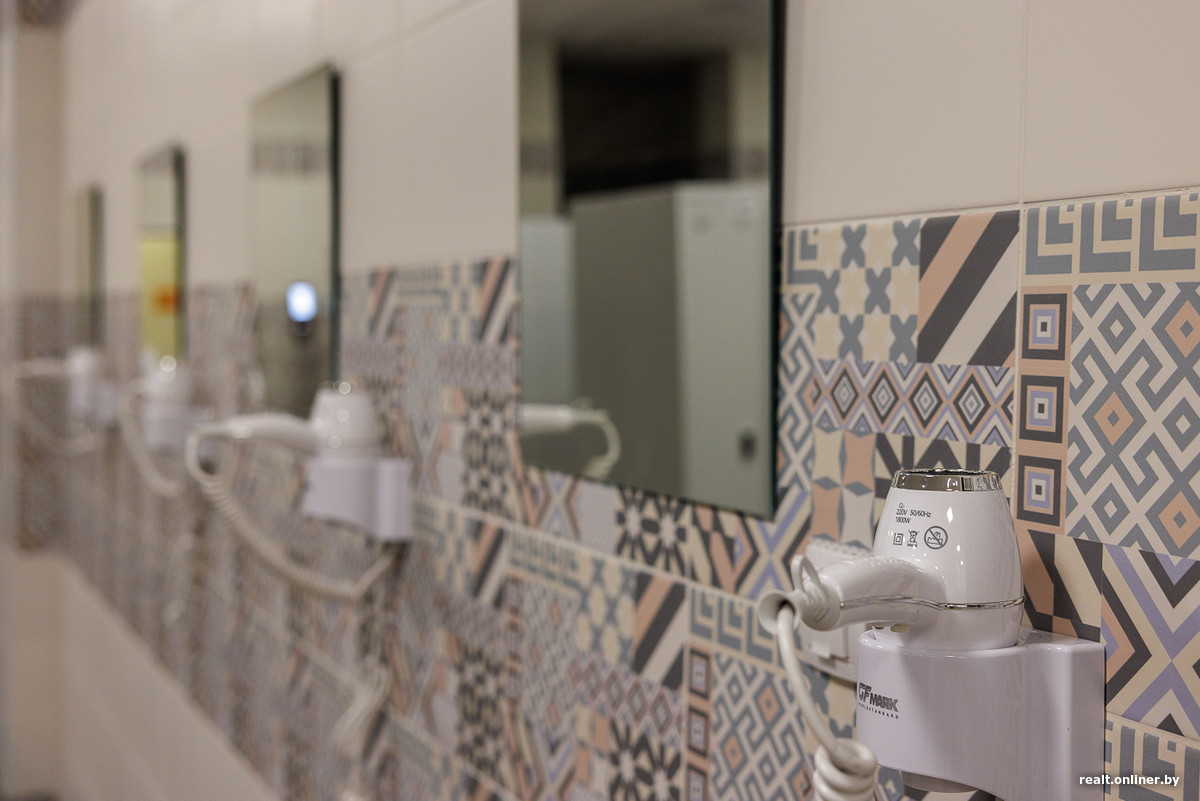 Пока мы рассматриваем прейскурант, к стойке подходит мужчина и интересуется, предусмотрены ли скидки для пенсионеров. Затем принимается внимательно изучать тарифы. Уже с утра, в первый полноценный день работы комплекса, здесь появляются ранние пташки — те, кто решил начать день правильно: с бассейна и бани.