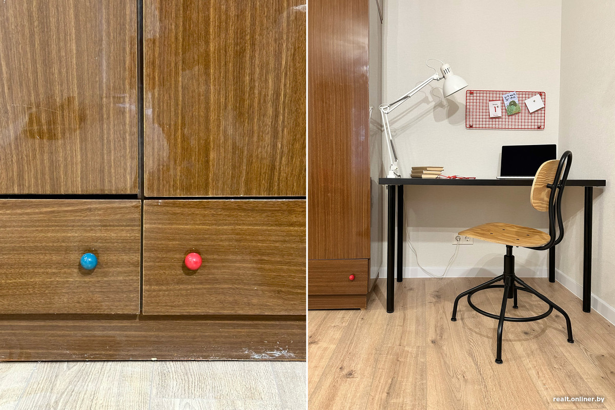 Наш «косметический» ремонт растянулся почти на девять месяцев. Старались делать экономно. Для крупных этапов — демонтажа, черновых и отделочных работ — через сервис «Услуги» на Onlíner мы нашли прораба с бригадой. Более мелкий ремонт, реставрацию, сборку мебели и декор делали своими силами. Как и на любой стройке, не обошлось без мелких недочетов, задержек и промахов, но в итоге все удалось довести до конца.