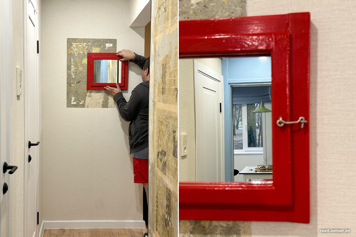 Из-за детских воспоминаний мы не смогли расстаться и со старым окном: его форточка стала декоративным элементом в прихожей.