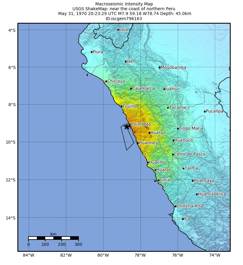 Возможно, представлявшая угрозу скала продержалась бы гораздо дольше, если бы не форс-мажорное обстоятельство. 31 мая 1970 года в 15:23 в Тихом океане, в 35 км от перуанского побережья, в месте, где плита Наска погружается под Южноамериканскую плиту, произошло мощное землетрясение, магнитуду которого оценили в 7,9. От подземных толчков пострадали многие перуанские населенные пункты, часть из которых оказалась полуразрушена. Но нигде последствия не были такими страшными, как в Юнгае.