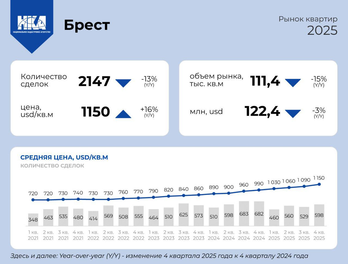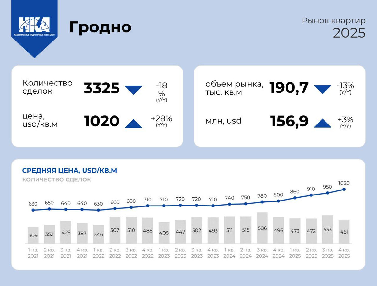 Не только в Минске «кипит» рынок недвижимости и покупаются дорогие квартиры. НКА подвело итоги года в областях. За 2025 год там было совершено 12,3 тысячи сделок. А в целом в пяти областных центрах Беларуси было куплено квартир на $548 млн.