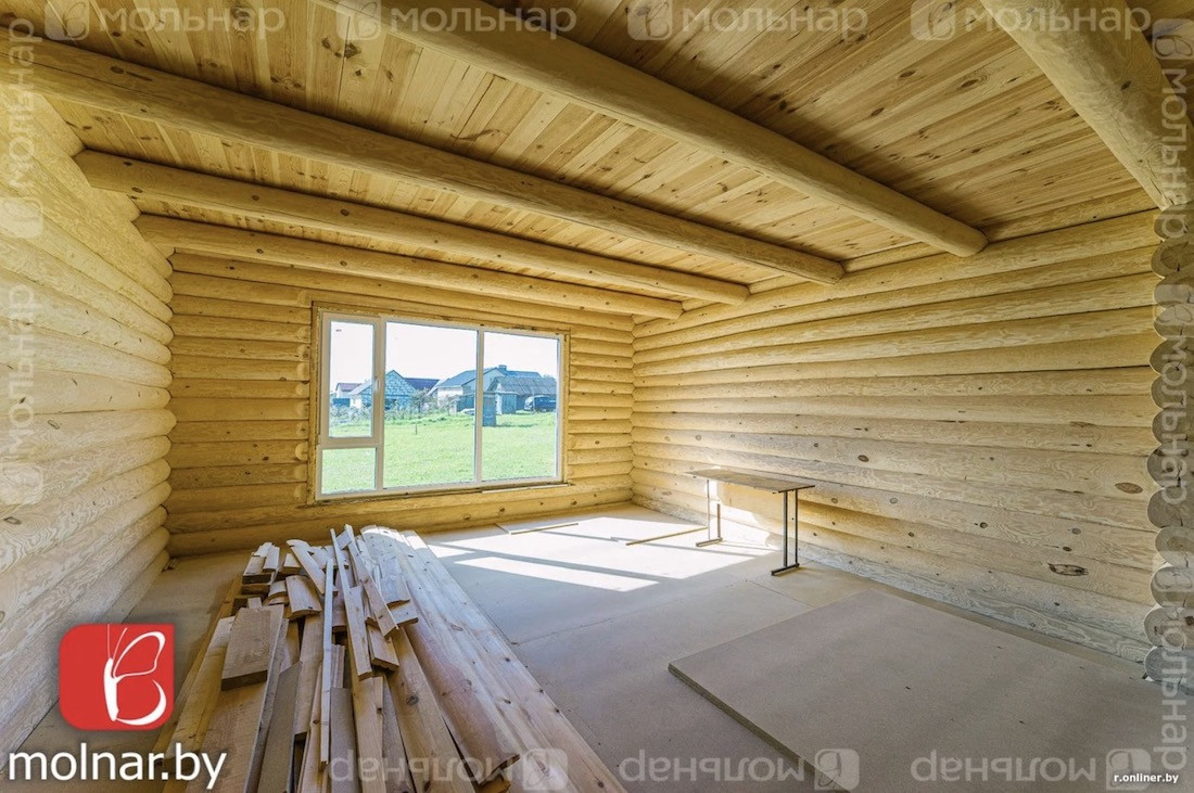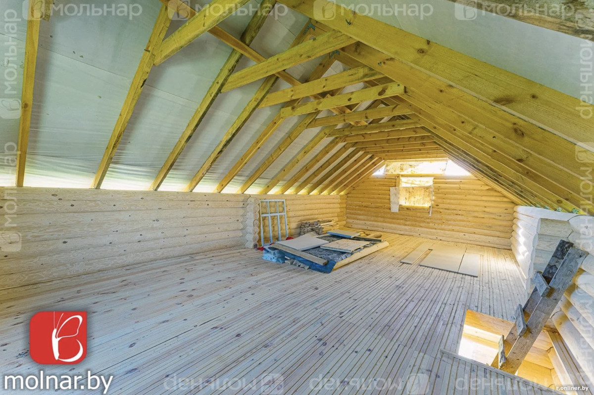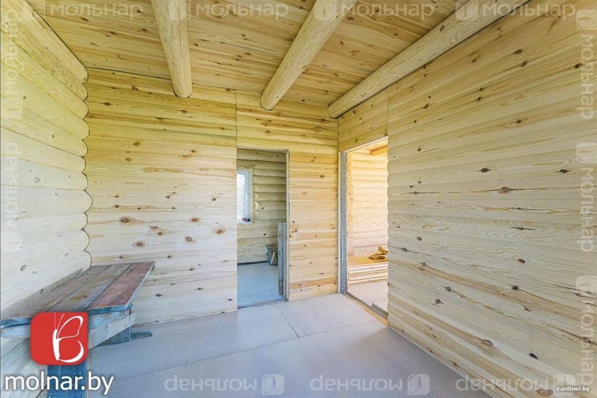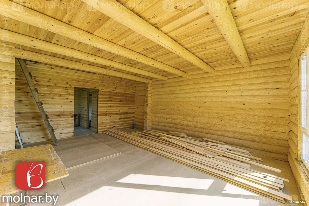 Ну и напоследок вариант для тех, кто любит «натур продукт». Красивый бревенчатый дом на 95 «квадратов» ждет своих почитателей в деревне Черниковщина, на Виноградной улице (адрес как будто из песни). Для простоты понимания — под Смолевичами. Полутораэтажное строение было собрано еще в 2024 году, теперь его надо привести в жилой вид (ну и кровлю доработать — без этого никуда).