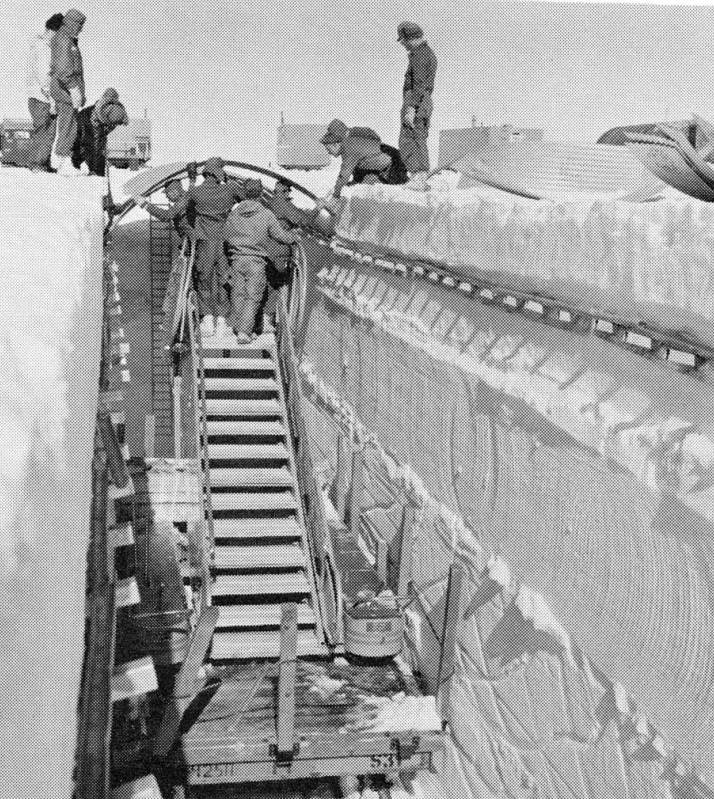 Во-вторых, в то же самое время созданию во льдах небольших баз ничего не мешало. Под укрытием снега людям при должном энергообеспечении не были страшны ни морозы, ни сильные ветра. Оказалось, что в идее автономного существования в отрыве от Большой земли, но при этом в относительном комфорте нет ничего невыполнимого. Этот опыт пригодился в дальнейшем при строительстве антарктических научных станций.