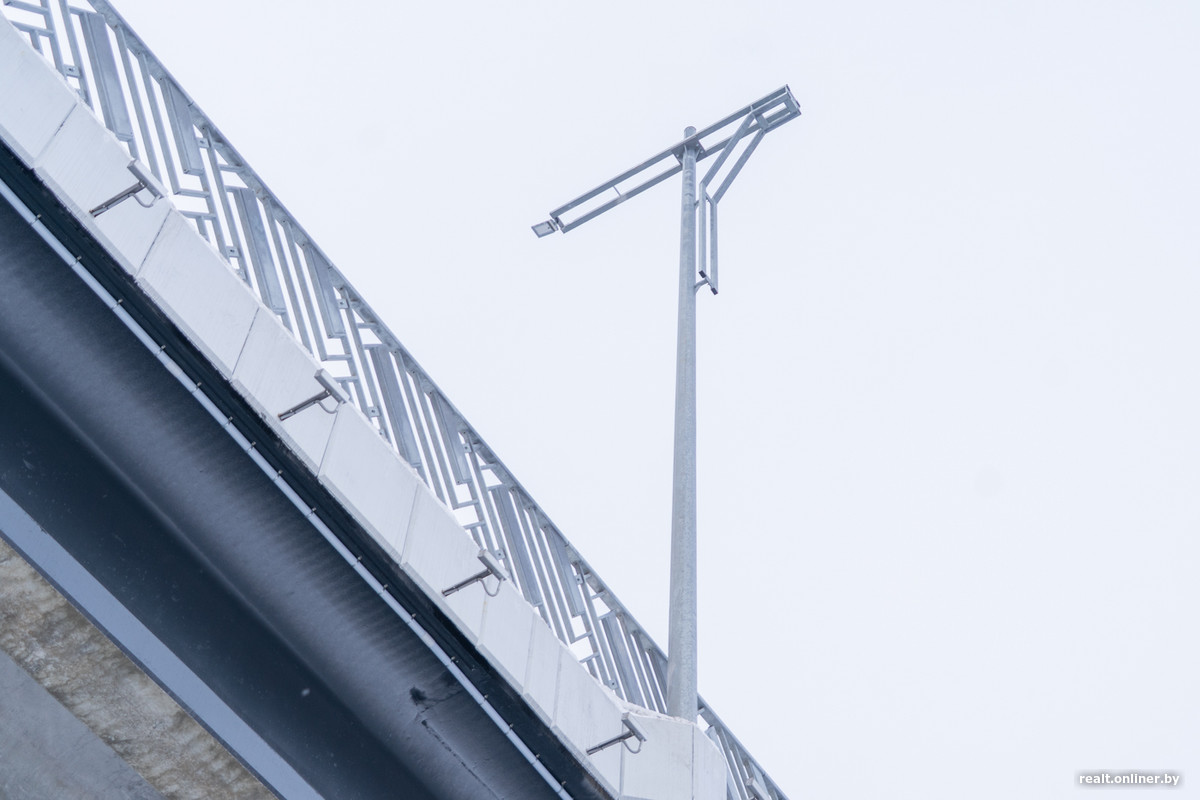 Для качественного наружного освещения были проложены 6,5 тыс. метров кабеля. Подняться на мост можно на лифте.