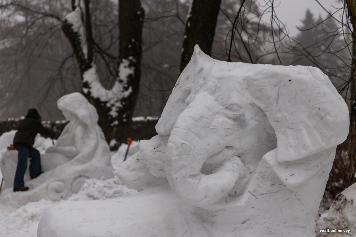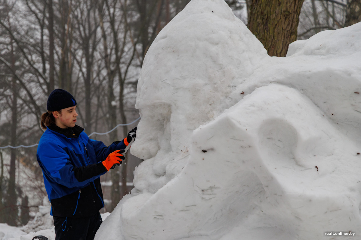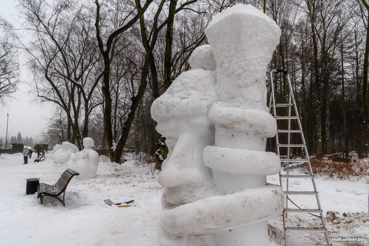 С 14 февраля в Центральном ботаническом саду НАН Беларуси начнет работу экспозиция снежных скульптур «Архитектура снега». Накануне открытия туда съездил наш фотограф и заснял процесс приготовления выставки к открытию.