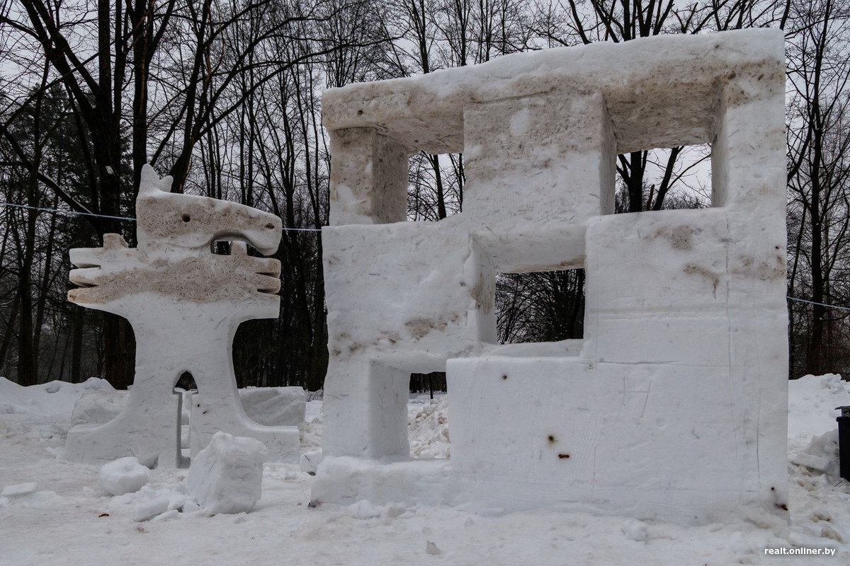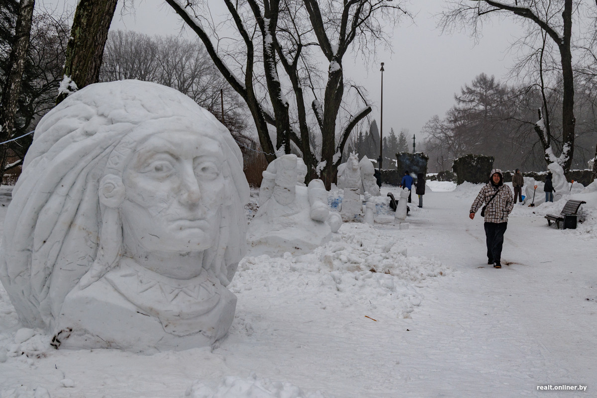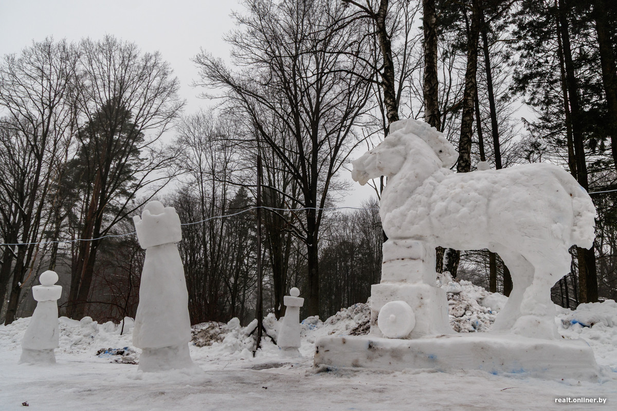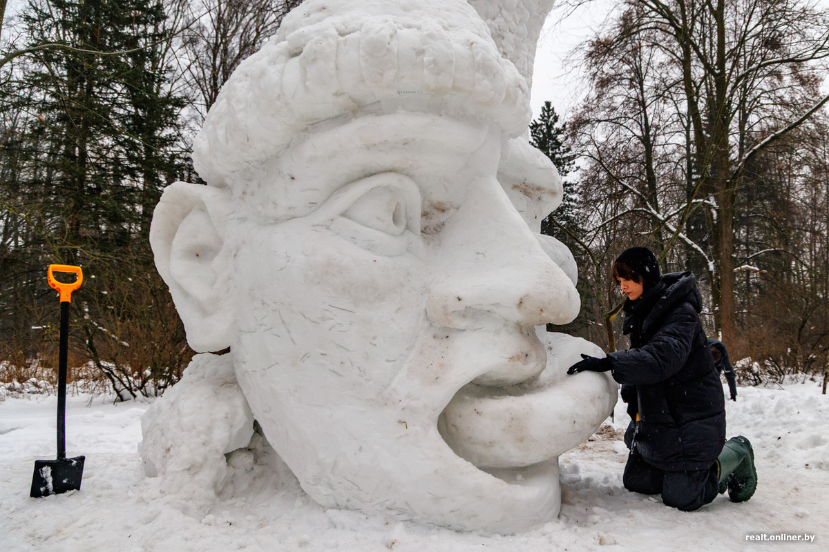 С 14 февраля в Центральном ботаническом саду НАН Беларуси начнет работу экспозиция снежных скульптур «Архитектура снега». Накануне открытия туда съездил наш фотограф и заснял процесс приготовления выставки к открытию.