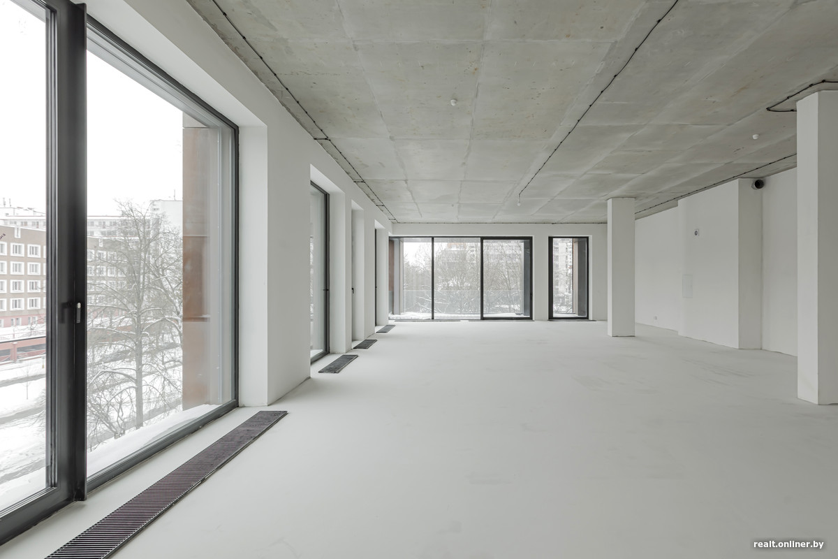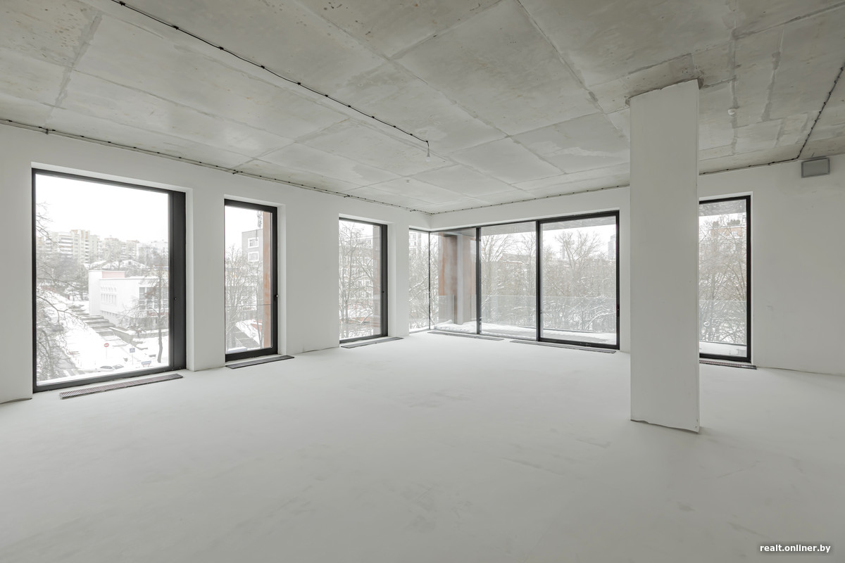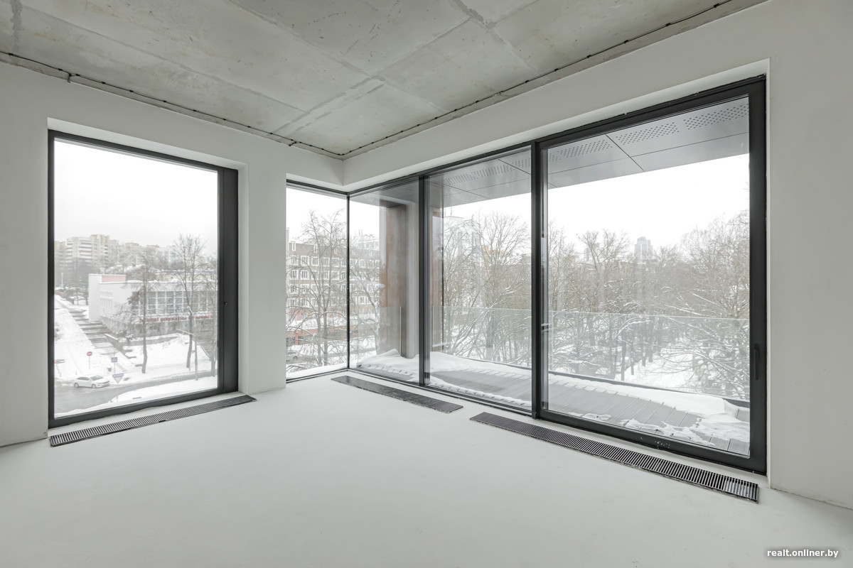 Как уже говорилось, маленьких квартир здесь нет. Самая компактная имеет площадь 113 квадратных метров, а самая большая — 230. Жилье продается со свободной планировкой и черновой отделкой. Правда, визуально отделка не выглядит совсем уж черновой — стены и потолки идеально ровные, выкрашены белой краской, что создает эффект чистого листа. Высота потолков — 3,75 метра.