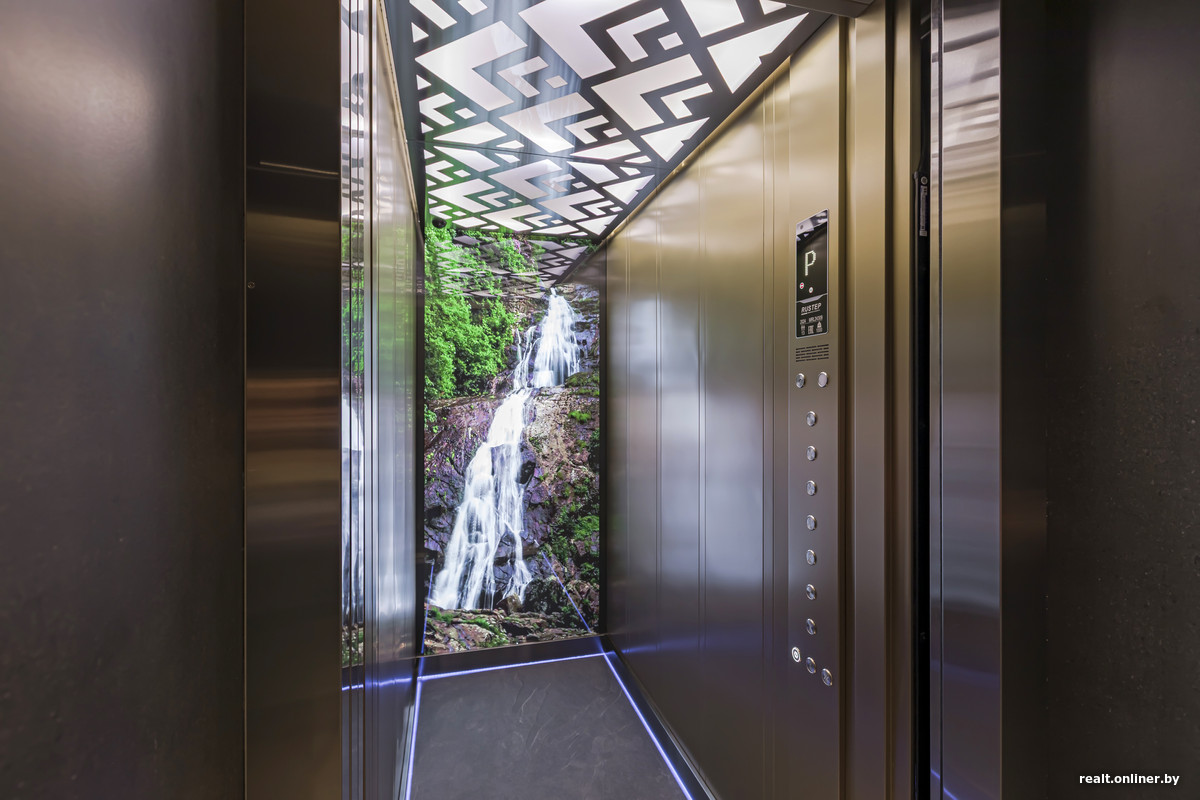 В каждом подъезде предусмотрено два лифта российского производства Rustep: один грузовой, выходящий на две стороны для удобства погрузки материалов, другой пассажирский. Они созданы на заказ.