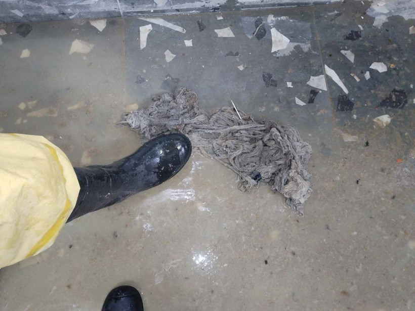«Над лифтовым холлом расположено техническое помещение, где и произошла течь. Ее причиной стал засор канализации. Специалисты провели промывку и извлекли из системы ветошь и тряпки, перемешанные со строительными растворами. Отходы попали в канализацию из-за использования ее не по назначению, что является частой проблемой для домов, где активно ведутся ремонты. На данный момент течь устранена», — объяснили в администрации Октябрьского района.