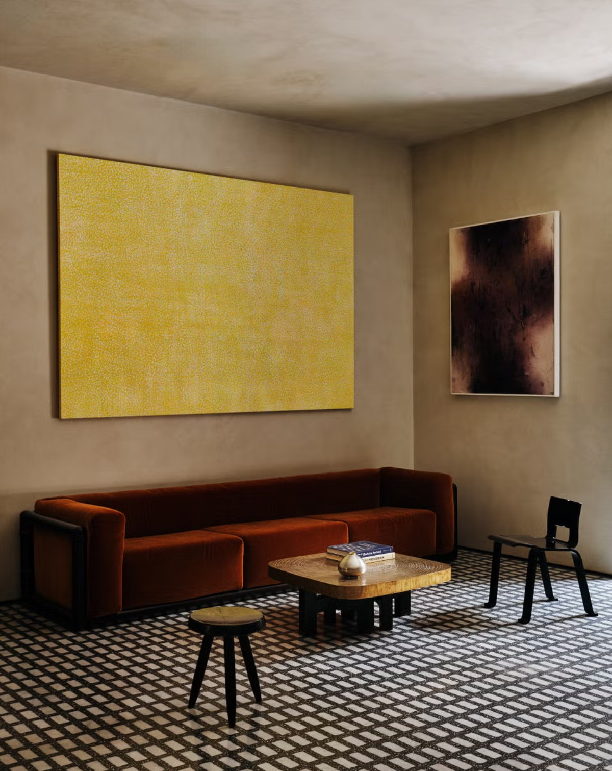 От прежнего сарая остался только фасад. Внутри — просторная гостиная с терраццо на полу, современная спальня с видом на сад, сдержанные и аскетичные кухня и санузел, аккуратно встроенные системы хранения и тщательно продуманная расстановка мебели и предметов искусства. Все подбирали так, чтобы ничего не спорило друг с другом, а, наоборот, создавало ощущение цельной композиции. Отделку в танхаусе выстроили на контрастах: светлый и темный травертин, текстура дерева, кожи.
