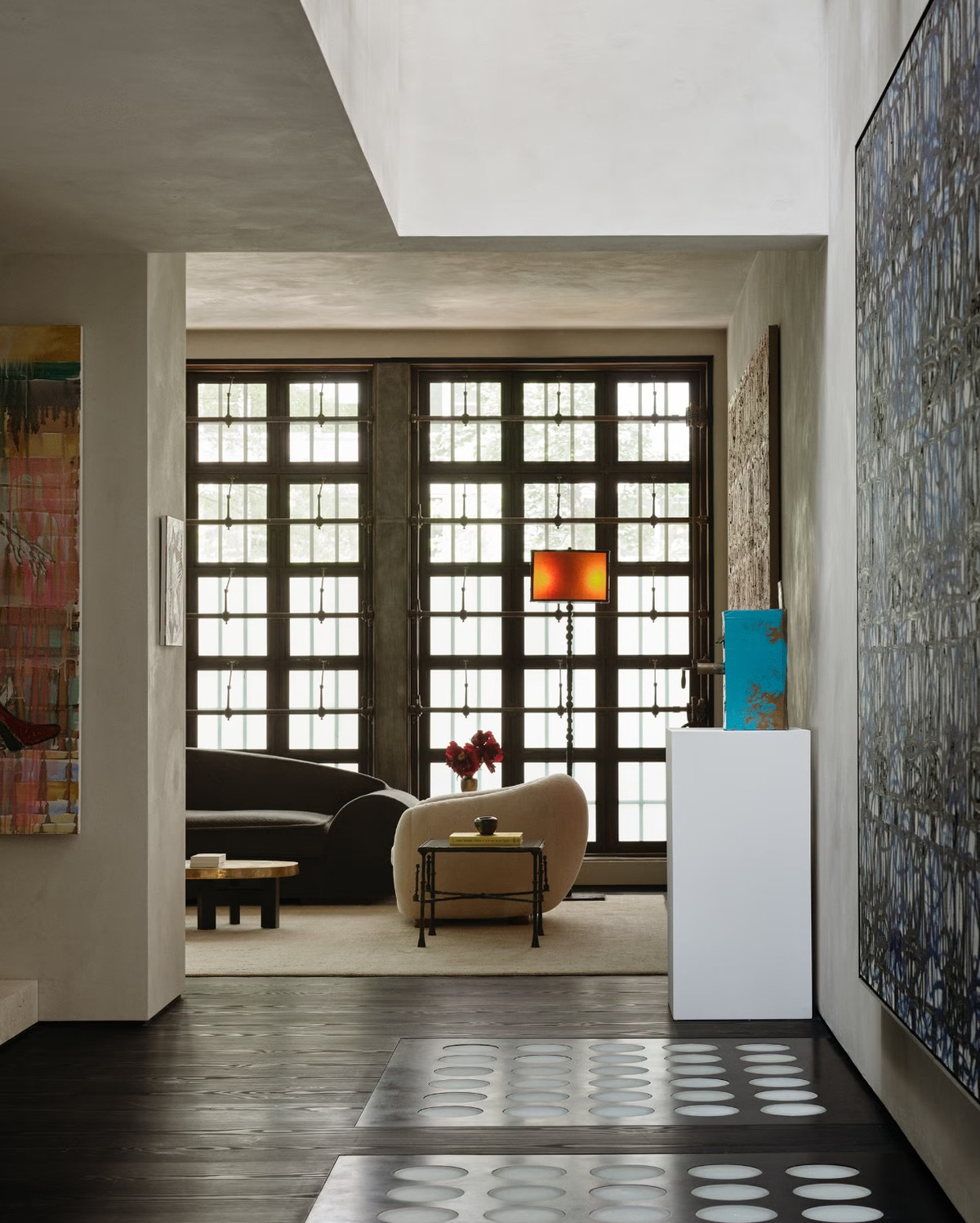 Немаловажную роль в интерьере играет свет. Он проникает через оригинальные квадратные окна и новые световые люки, которые не просто освещают комнаты, а меняют восприятие пространства — смягчают строгие поверхности и добавляют глубины.