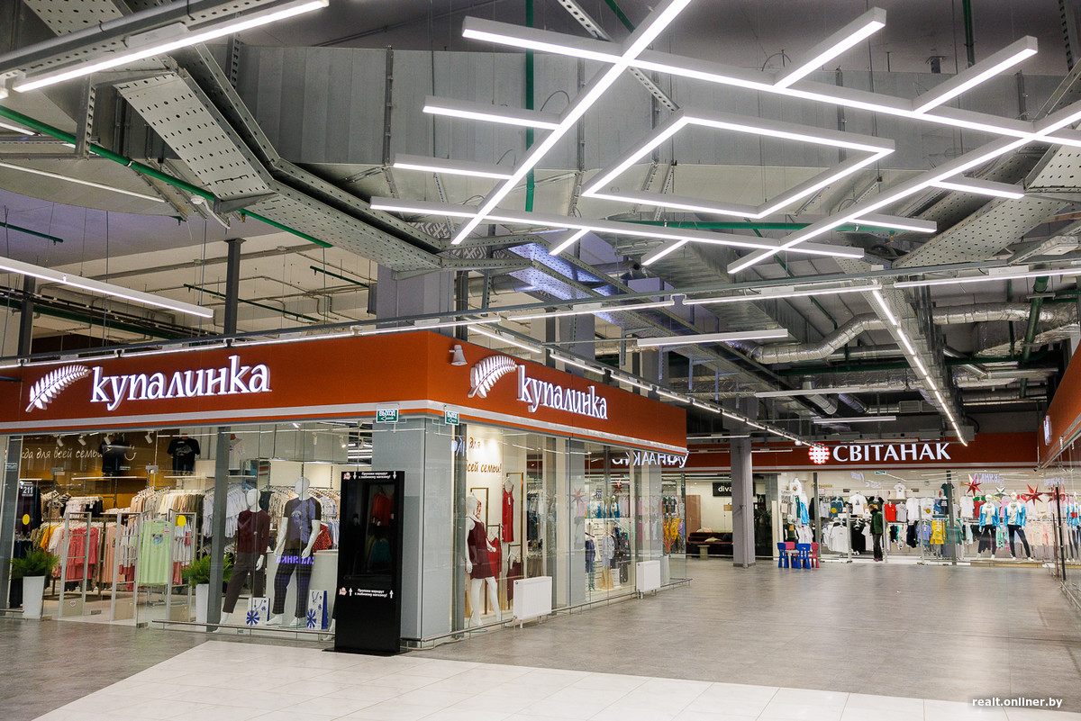 В торговом доме собрали не только бренды, которые давно на слуху, но и те, о которых, возможно, вы услышите впервые. Тут есть привычная «Купалiнка» с домашним трикотажем, «Свитанак», Mark Formelle. Обувь представлена магазинами Marko и Belwest, сумки продаются в Mattioli и «Галантее», верхняя одежда — в Elema (и не только). Также можно найти строгие мужские костюмы и женские платья с блузками от менее известных производителей.