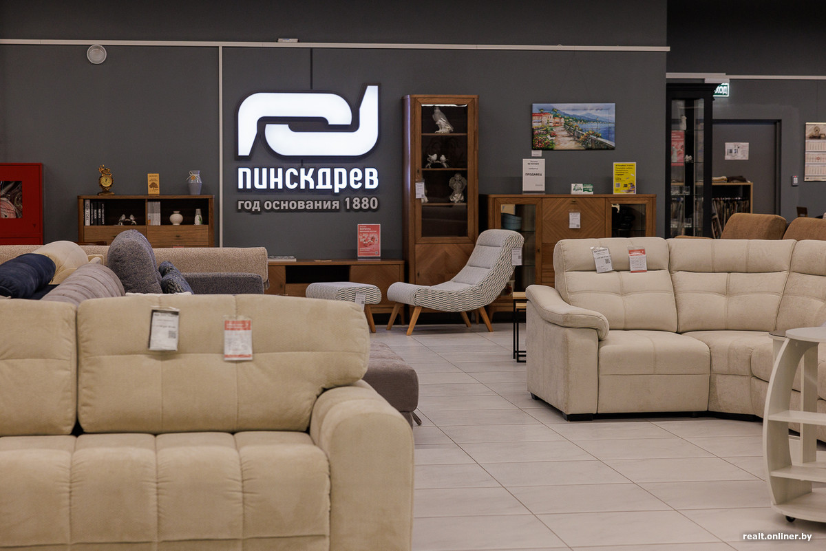 Солидную часть Первого национального занимают товары для дома. Мягкая и корпусная мебель, кухни, двери, обои и плитка — если постараться, можно собрать фуллхаус для своей квартиры. Попадаются и знакомые вывески («Пинскдрев», «Ами», «Керамин»), и названия, которые ни о чем не говорят, поэтому нужно заходить внутрь и знакомиться с ассортиментом.
