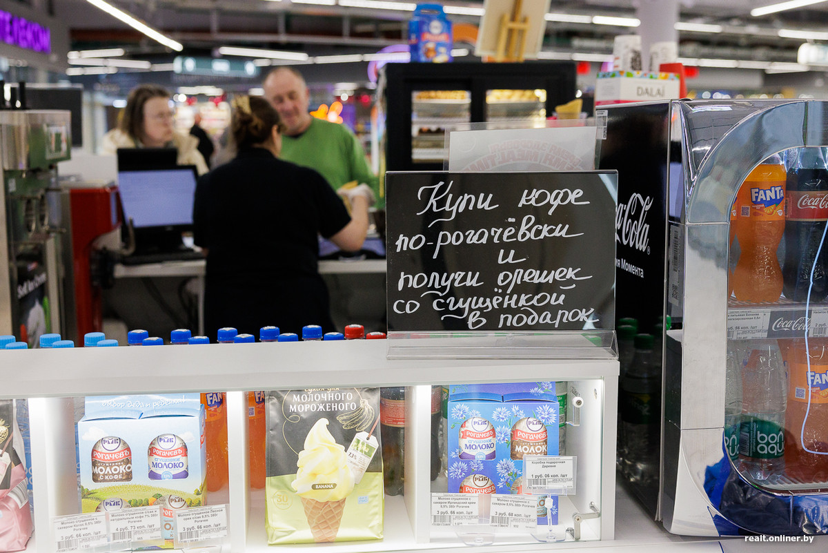 — На самом деле идея если не гениальная, то очень близкая к этому — собрать в одном месте все белорусские товары, — делится мыслями минчанка Марина. — Как-то даже видела в TikTok ролик россиянина, который ходил по Первому национальному и поражался тому, что у них такого нет, что до такой концепции не додумались. И я с ним согласна: ладно мебель, ее не так часто обновляешь, но вот собрать идеальную продуктовую корзину максимально просто, даже если вдруг любишь что-то очень локальное. Единственное, ТРЦ не хватает, наверное, стиля и лоска. Как-то все простенько обустроено. Ремонт максимально базовый. А так тут же и детский центр есть, и несколько точек, где перекусить. Причем выбрать можно как модную пекарню, так и, например, «Каравай», где «олдовые» пирожные по смешным ценам. В общем, приятное место без толп, где можно походить-поглазеть и даже удивиться: некоторые продукты видела только тут. А, ну и РСЦ Первомайского района тоже здесь: удобно, хоть иногда и очень медленно.