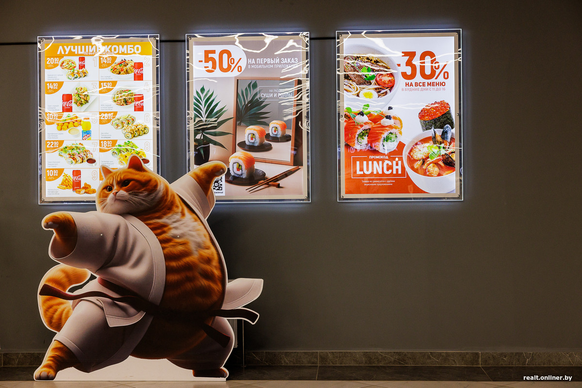 Перекусить тоже можно. На нижнем уровне работает кафе «Пан Жыта» с белорусской кухней — полноценно поесть можно и за 20 рублей. Предполагаем, что пообедать сюда заходят сотрудники ближайших офисов: половина столиков была занята.