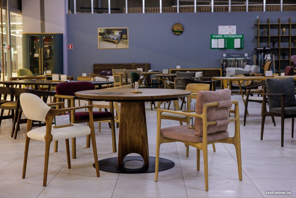 В «Поставском мебельном центре» продают большие столы и обеденные стулья из массива дерева.