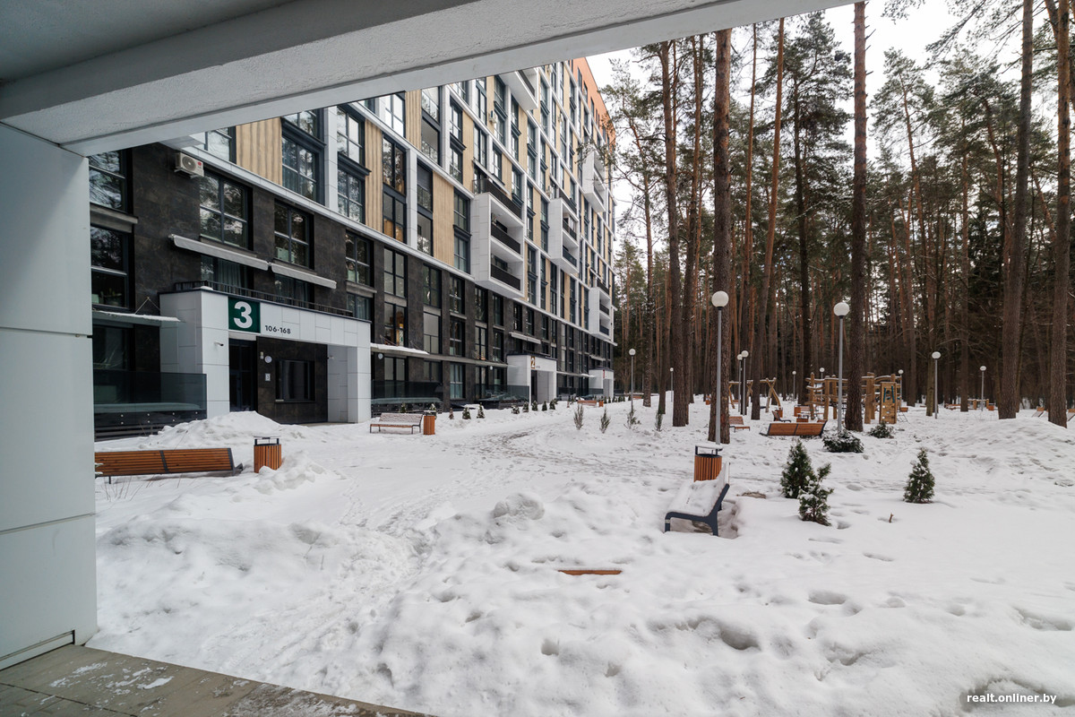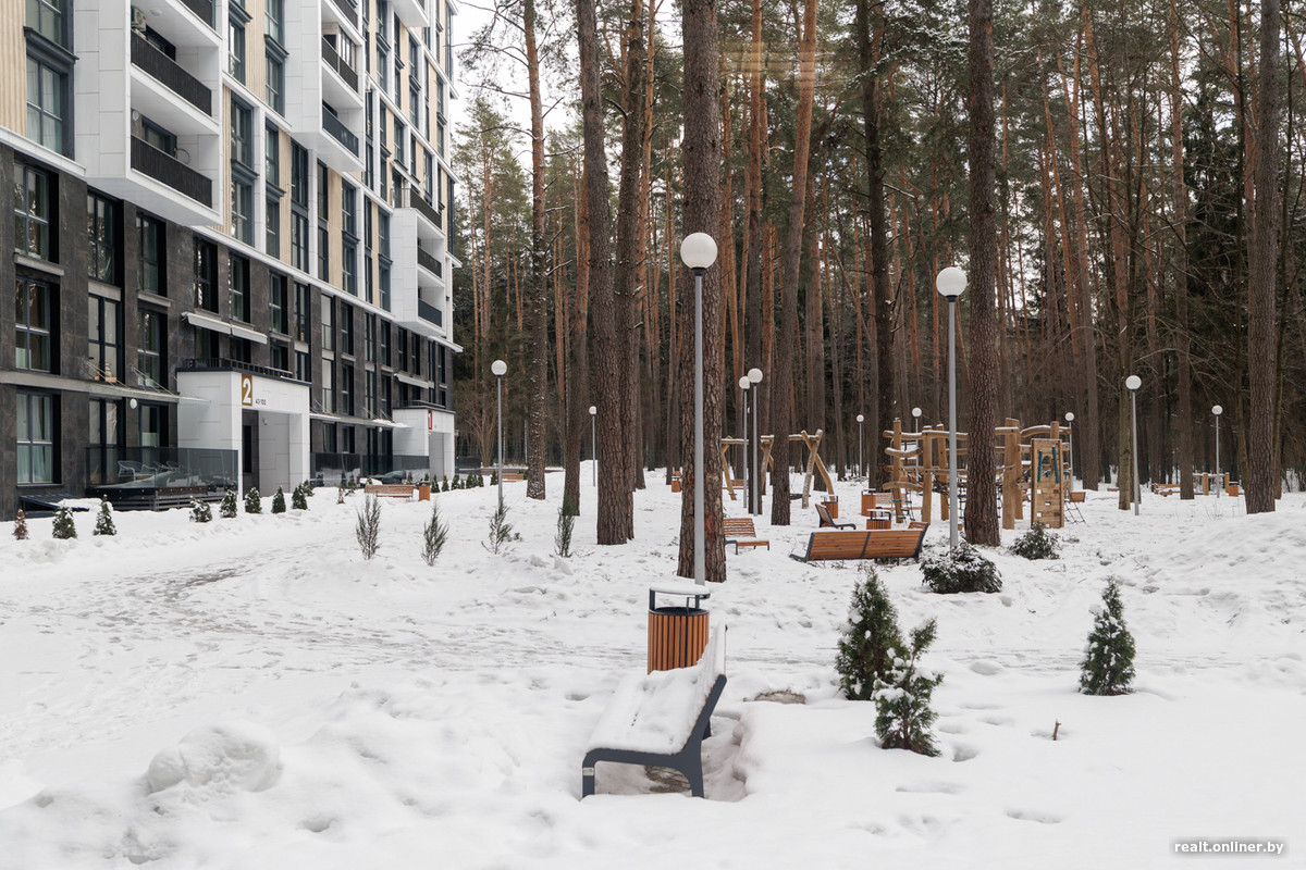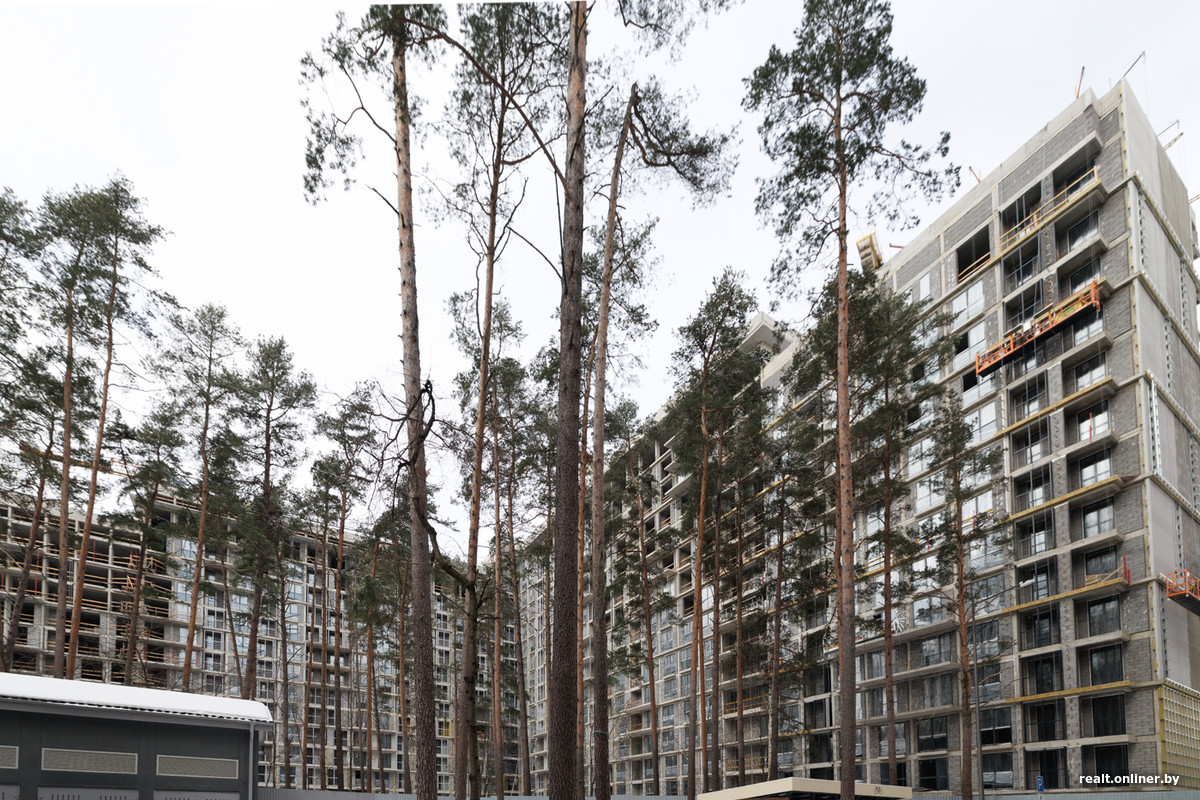 Когда уже казалось, что рынок столичной недвижимости не может преподнести сюрпризов, появился он — жилой комплекс «Уютный». Союз многоквартирных высоток, таунхаусов и коттеджей в черте МКАД воспринимался как нечто нереальное. Еще более призрачной затея виделась из-за того, что «поселили» ЖК среди соснового леса — взрослого, густого, тенистого. И произошло это не где-нибудь на окраине Минска, а в десяти минутах езды от Национальной библиотеки. При этом какими бы фантастическими (на фоне остальной застройки) ни выглядели планы, они стали сбываться. Сегодня, спустя почти три года с начала освоения площадки, мы заглянули в многоэтажную часть, чтобы проверить обстановку «на местах» и узнать, разбирают ли квартиры в ЖК, строительство которого не на виду.