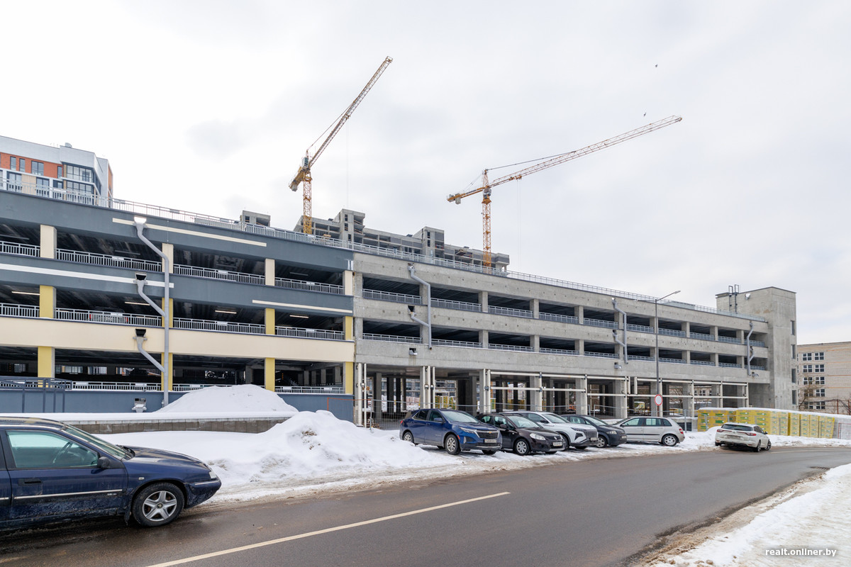 А внимание новой партии дольщиков (и тех, кто может к ним примкнуть) приковано к строящейся многоэтажке. В ней будет уже семь подъездов и 419 квартир. На первом этаже обещают разместить встроенный детский сад на 60 человек. По традиции застройщик, ГПО «Минскстрой», «придерживает» последние этажи: «квадраты» с самым красивым видом пока не поступали в продажу, хотя дом уже не только полностью вырос в монолите, но также успел частично защититься от непогоды керамзитобетоном и остеклением.