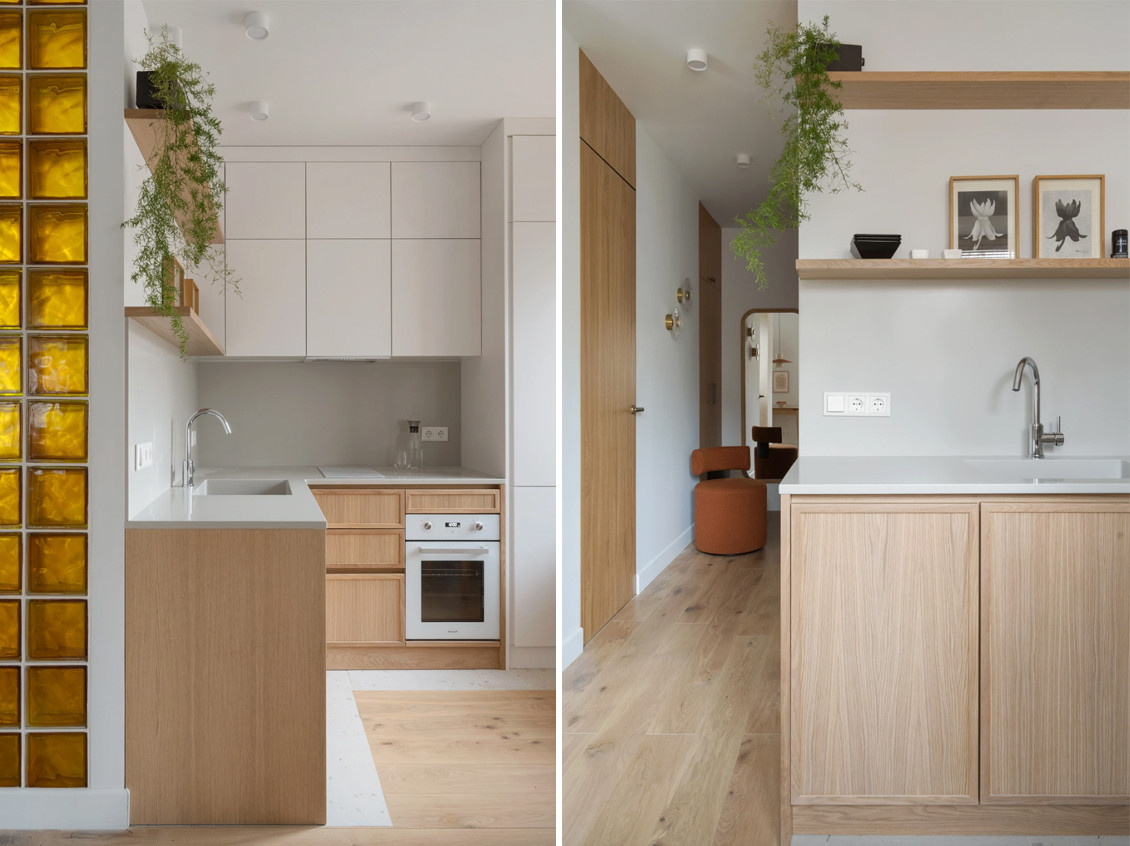 О квартире площадью 32 метра рассказал портал interior.ru. Она принадлежит студентке и находится на втором этаже московской сталинки. Дизайнером выступила Анастасия Холопцева. Ей удалось превратить угловую однушку в двушку, в которой есть отдельная спальня и полноценная кухня.