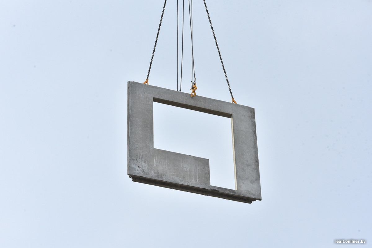 Генеральный директор Гомельского ДСК Александр Гончаров рассказал, что строители приступили к монтажу панелей и перекрытий, предварительно укрепив конструкцию: