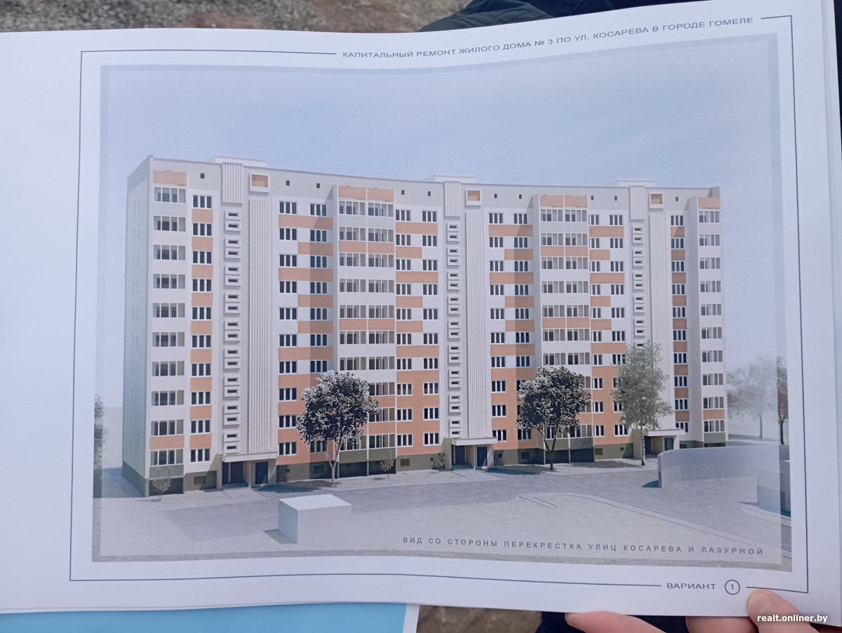 По информации портала «Гомельская правда», проект разделен на две очереди. Первая предусматривает восстановление поврежденной части третьего подъезда, вторая — комплексный капитальный ремонт всего жилого дома.