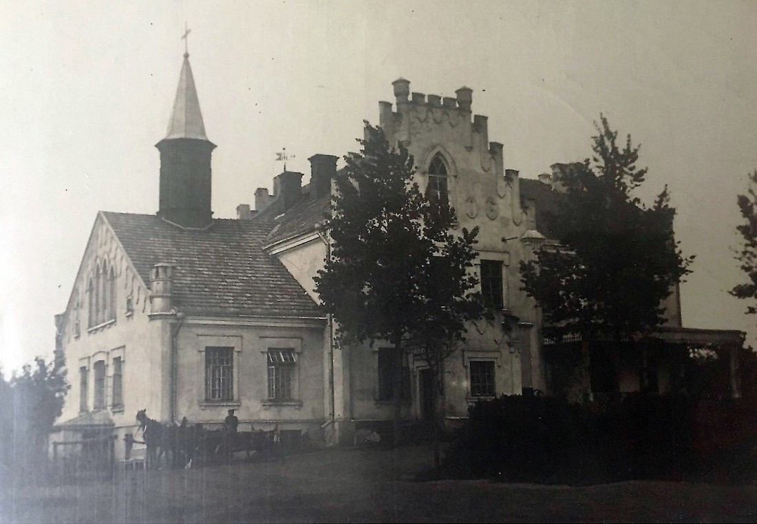 Только в 1906 году Ян Бохвиц приступил к строительству дворца. В архитектурном плане курс был взят на неоготику. Вытянутые окна, декорированные башенками углы, белоснежные ризалиты, терраса с видом на свежепосаженную дубраву — можно только представить, какое впечатление производила усадьба на гостей.