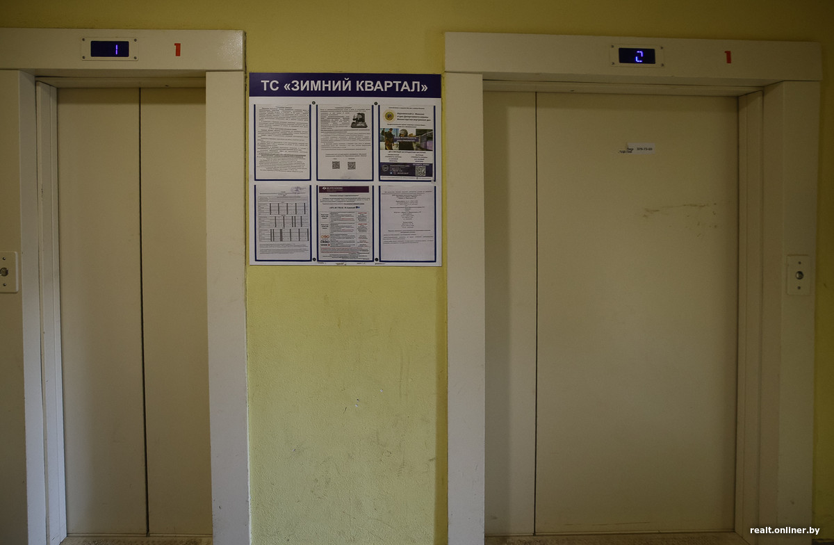 Видно, что жильцы при помощи товарищества старательно поддерживают чистоту и уют мест общего пользования: плитка на полу и стенах, эстетичные указатели, аккуратные лифты. В кабине вновь встречаем атрибут осени.