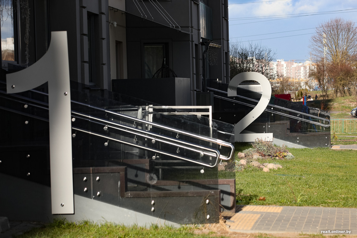 Ну и нельзя не отметить стеклянные входные группы и обрамления крылец. Крупные номера подъездов вечером подсвечиваются. Идея классная, ведь все мы знаем, как порой сложно рассмотреть номер нужного подъезда в старом (да и новом) жилом фонде.
