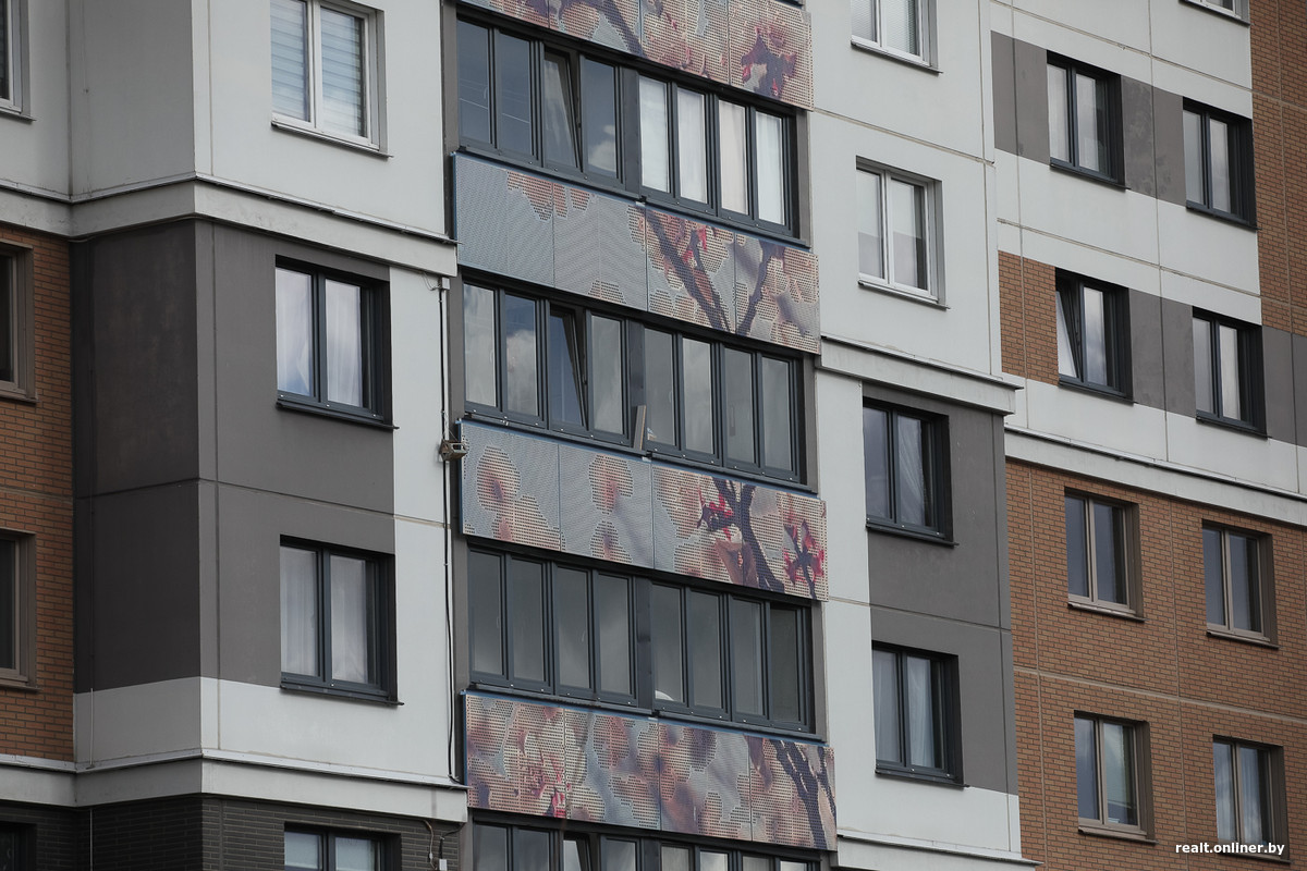 В квартале есть две мапидовские 19-этажные свечки. Одна из них стоит на улице Максима Горецкого, 1А и красуется на солнышке колосящейся рожью на фасаде.