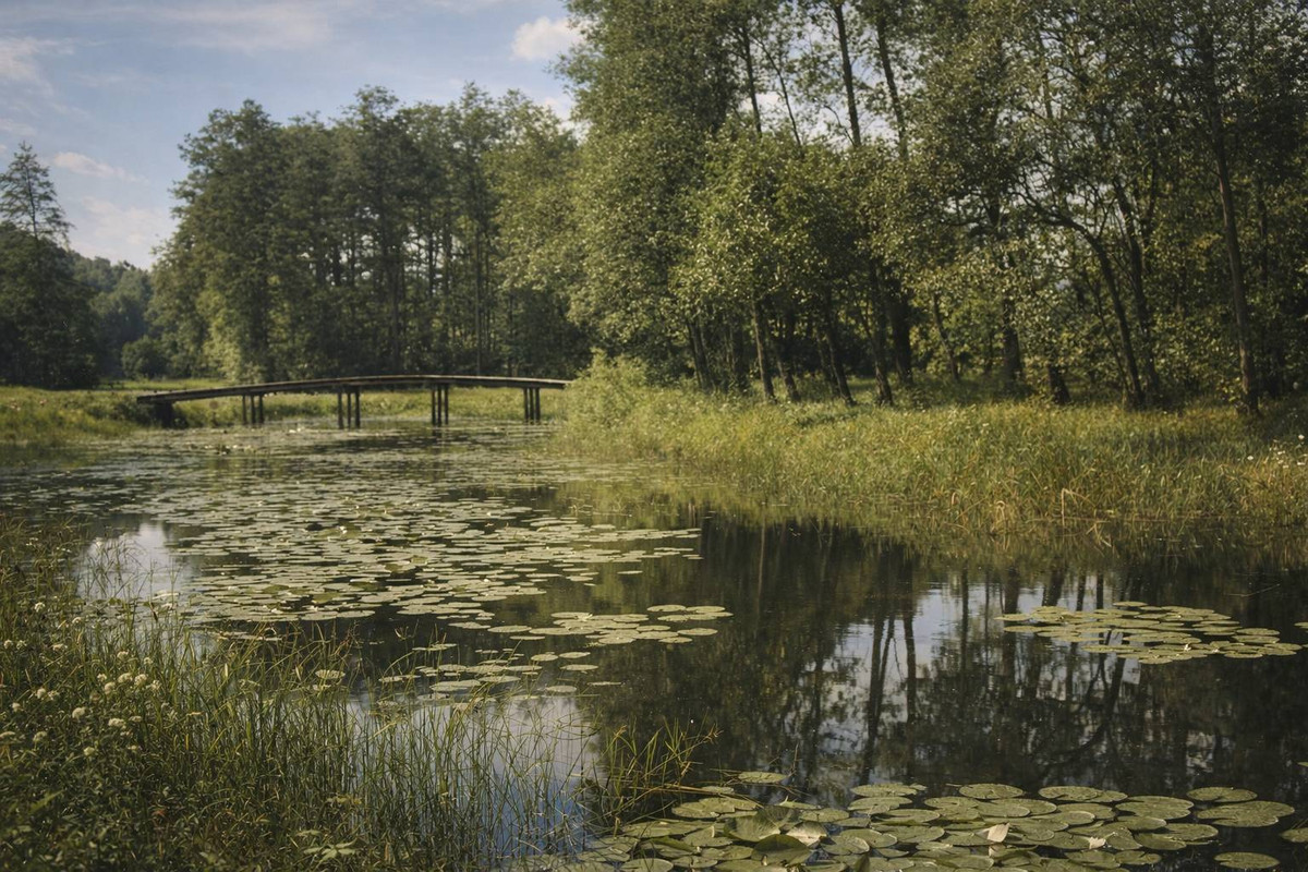 А рядом — одичавший пореченский парк, где еще можно почувствовать масштаб. Старые деревья, тропинки, тишина. Здесь до сих пор растут привезенные хозяином поместья экзотические деревья — редкий для Беларуси болотный кипарис и тюльпановое дерево, которое раз в год зацветает желтыми цветами.