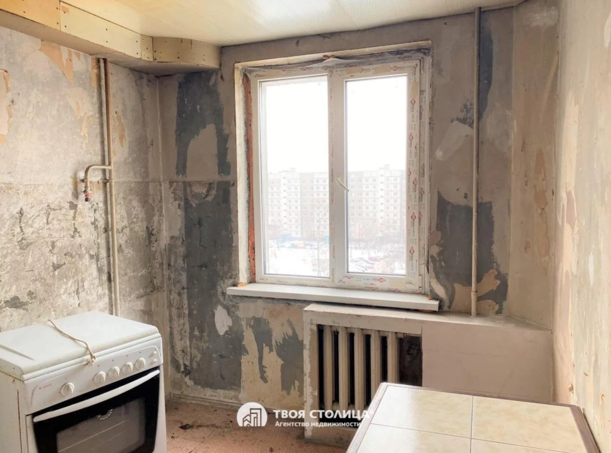 Прежде чем показать вам нового рекордсмена, вспомним предыдущего. Располагается на улице Селицкого. Сам дом здесь — это панелька 1992 года. Размер жилья — 33 «квадрата», причем кухня занимает 7,1 кв. м. Однушка уже подготовлена к ремонту — почти все помещения «раздели» до черновой отделки. Разве что санузлы готовы к использованию.