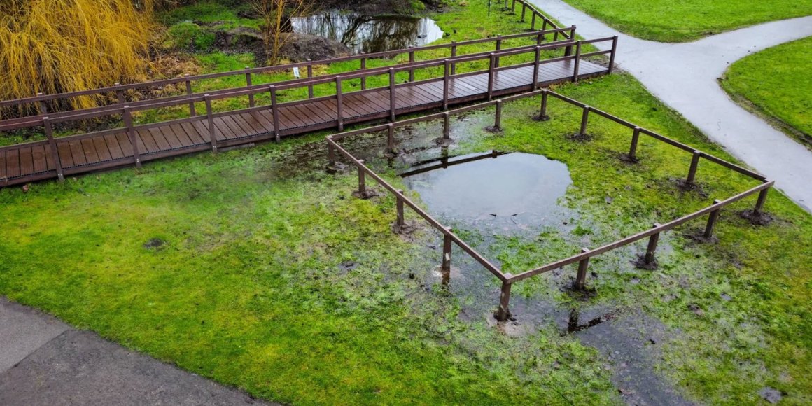 Жители британского города Йорк в недоумении от действий администрации местных парков. В одном из них зачем-то оградили забором водоем, больше похожий на небольшую лужу. Тем не менее авторы решения утверждают, что это пруд, опасный потенциальным утоплением, пишет The Sun.