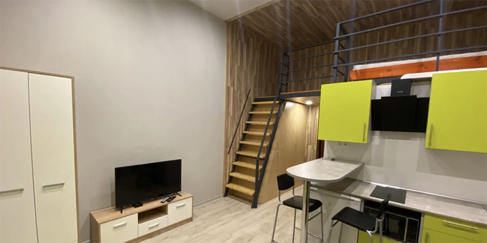 В Минске сдается небольшая, но стильная квартира-студия за вполне себе лояльную цену — $300 в месяц. Но есть нюанс. Располагается она не в новостройке «Минск-Мира» и даже не в старой хрущевке, где малогабаритки не редкость. Ее обустроили в небольшом двухэтажном доме, который является то ли частным, то ли административным, то ли складским. «Называйте это бутик-отелем», — намекнул собственник жилья.