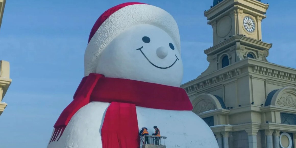 Харбин — «зимняя» столица Китая. Ежегодно там проводят масштабные фестивали ледяной скульптуры, но в этом году город решил удивить и другой инициативой. Там соорудили снеговика, однако не обычного, а гигантского. Высота нового украшения сравнима с шестиэтажным домом, пишет The Sun.